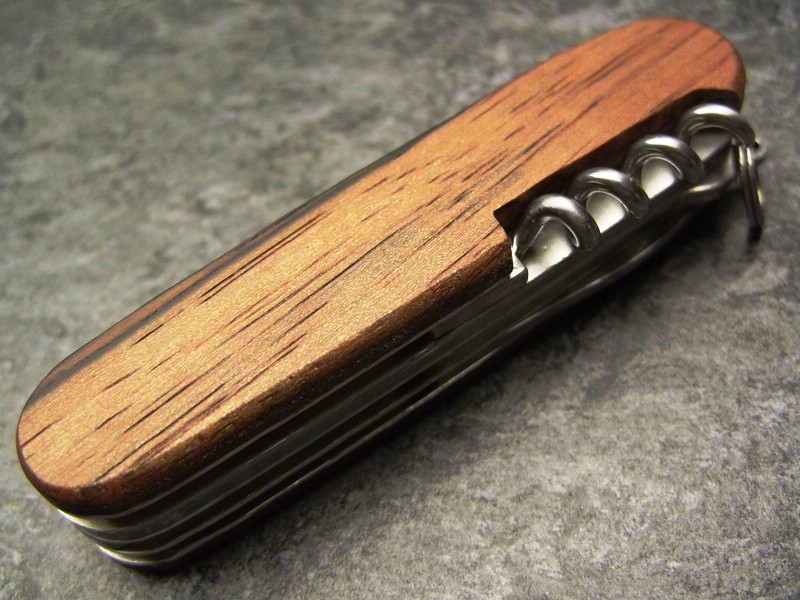 Again precious Indian Rosewood embellishs a Swiss Army Knife, which does not only shine due to its broader tool-range: The color gradient from purple-black over choclate-brown to tender caramel is really adressing.