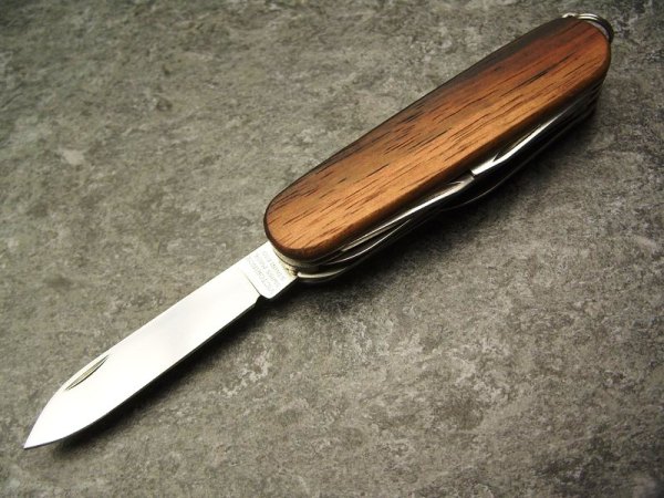 Und wieder ziert edles ostindisches Palisanderholz ein Schweizer Messer, welches nicht nur durch ein breiteres Werkzeugangebot glänzt. Denn der Farbverlauf des Holzes von lila-schwarz über schokobraun hin zu zartem Caramel ist besonders ansprechend.