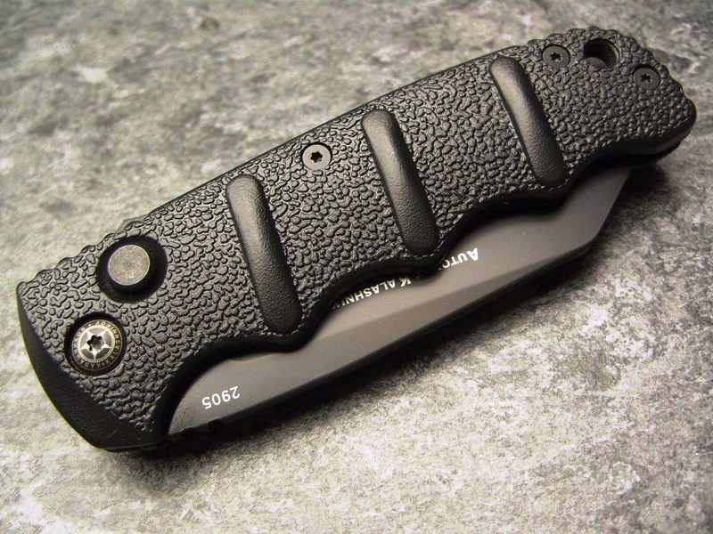 The blade of this automatic knife opens quick and easy via push-button and locks properly. To unlock the blade you just push the button again.